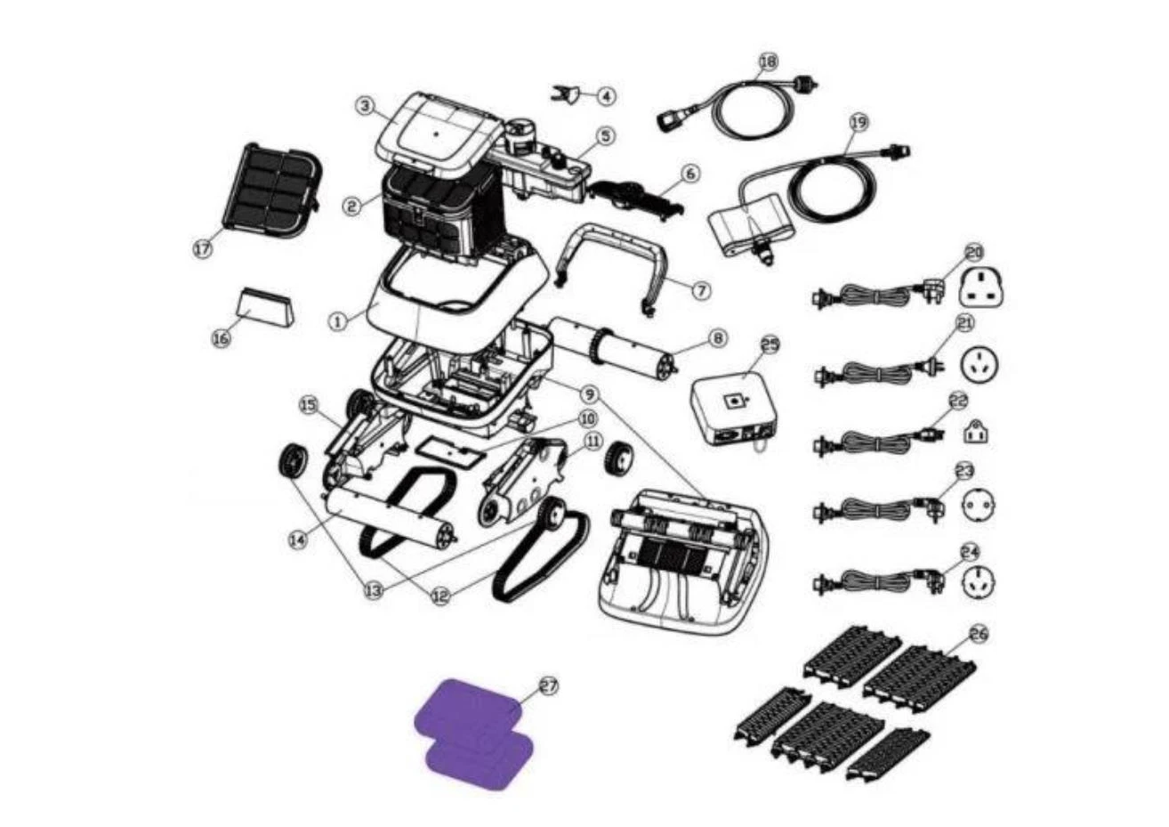 Fijne filter (part 27) voor de zwembadrobot AQT poolcleaner. Deze filter komt onderaan in je filtermand en filtert het fijn vuil.