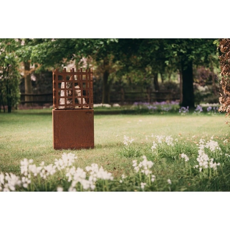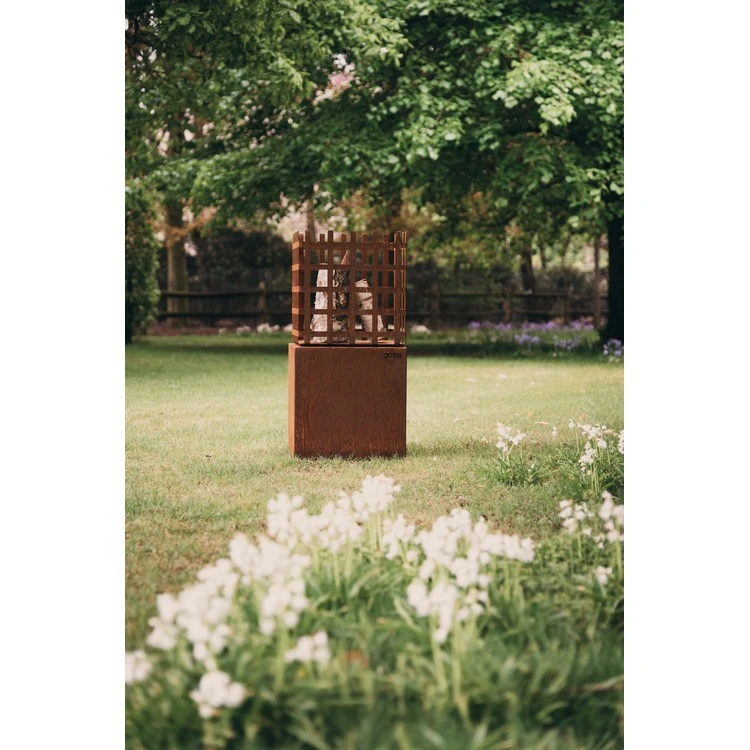 Block C design vuurkorf met een hoogte van 80cm of 120cm. Robuust gemaakte design vuur mand voor het leven in cortenstaal. Door de jaren zal het materiaal een natuurlijke roest kleur patina krijgen. Met zijn natuurlijke look en roestkleur patina past hij in ieder tuinontwerp.