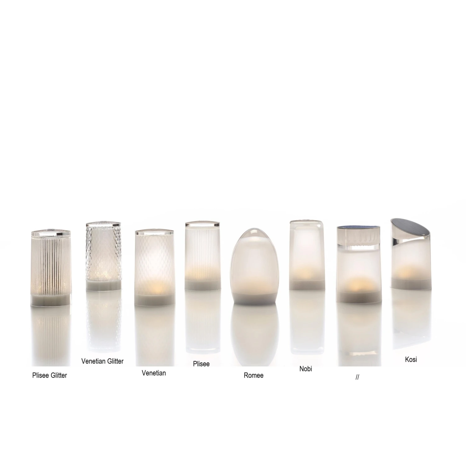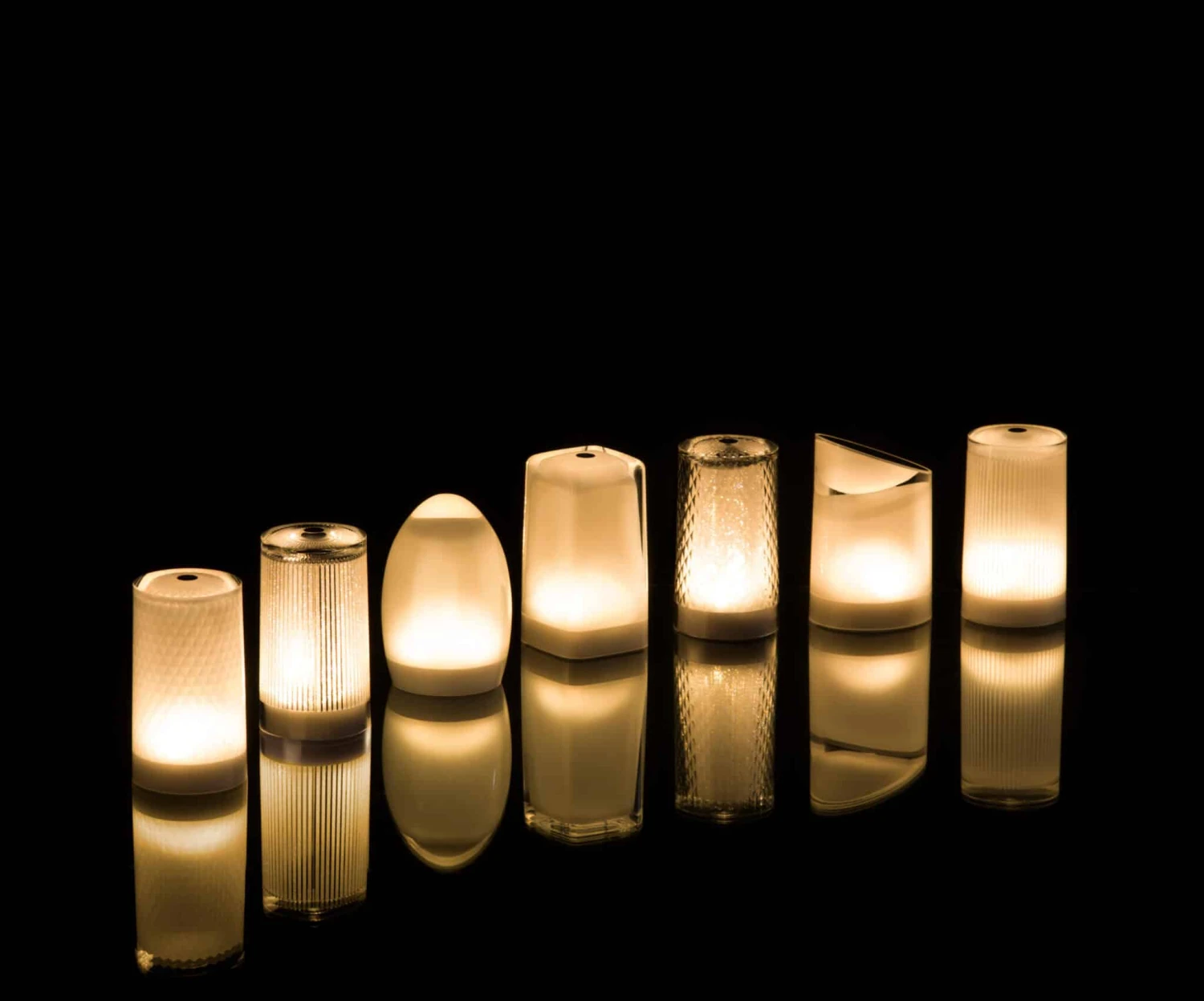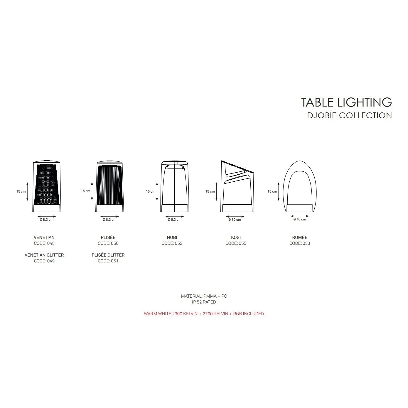 Uniek aan deze tafellampjes van de DJOBIE collectie is hun imitatie glas look. Dit is een tafellamp gemaakt van PC (polycarbonaat). Daarom is deze tafellamp, roestvrij, verkleurd het “glas” van de lamp niet en is de tafellamp shock en kras bestendig. Ideaal als alternatief voor kaarsjes op tafel.