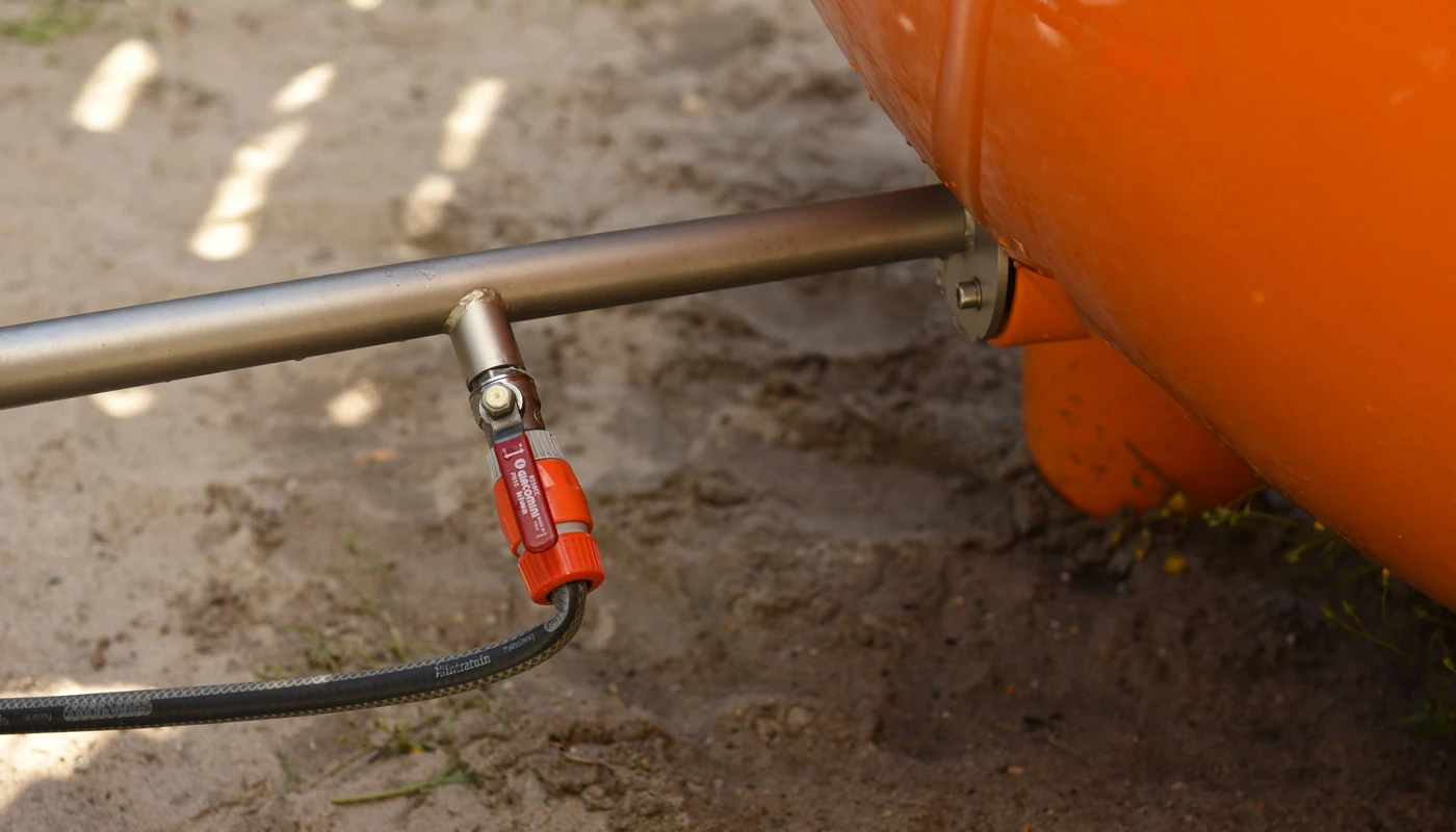 Het water circuleert natuurlijk, zonder pomp of jets maar door de natuurlijke opwarming via het spiraal. Er is geen filtersysteem of patroon filter. U kan het buitenbad onderaan het spiraal eenvoudig vullen met de tuinslang. In het bad voor in de tuin zit 650L water. Dit kan je met de kachel en het spiraal opwarmen, wordt aangezogen en bovenaan in het Dutchtub komt het warmte water er terug in.