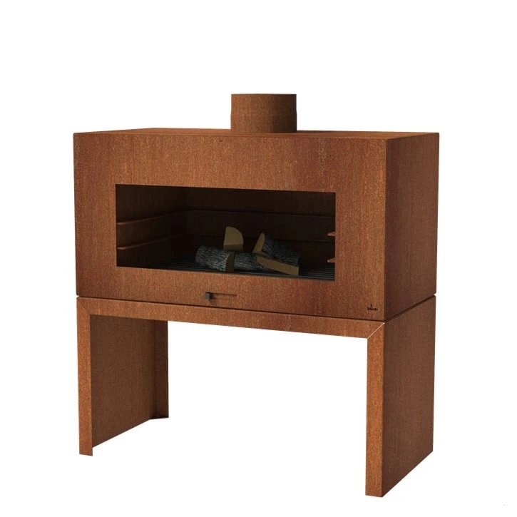 Deze tuinkachel kan je uitrusten met een venster om het vuur spetters tegen te houden en het toch iets veiliger te maken. Ook is er een BBQ rooster beschikbaar van 70 cm die u kan gebruiken om te bakken op dit tuin haardvuur.