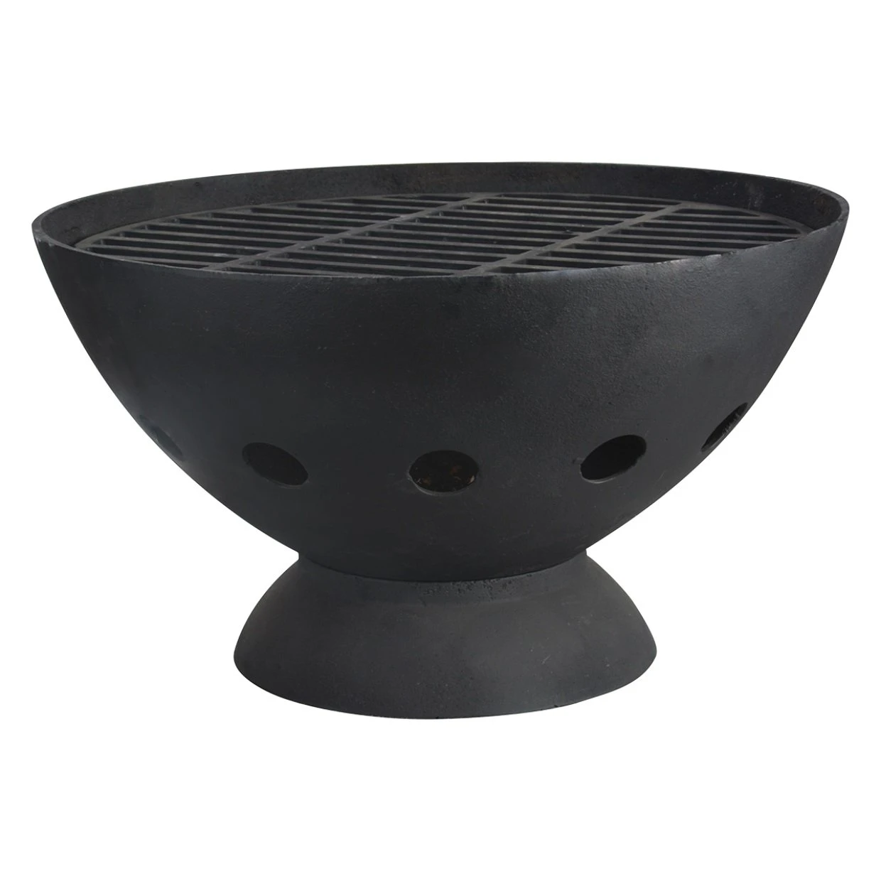 Gietijzer vuurschaal BBQ met een diameter van 54cm. Kan gebruikt worden als vuurschaal, geleverd inclusief BBQ rooster en kan dus ook gebruikt worden om iets lekkers op te grillen. Zeer stevige zware uit gietijzer vervaardigde en stabiele vuurpot BBQ. De grote openingen in de vuurschaal zorgen voor een goede verbranding en gezellige warmte 360° rondom de vuurpot. Met de rooster op de vuurschaal kan u heerlijk grillen. De invloed van het weer en het vuur zullen deze vuurschaal prachtig mooi laten roesten.