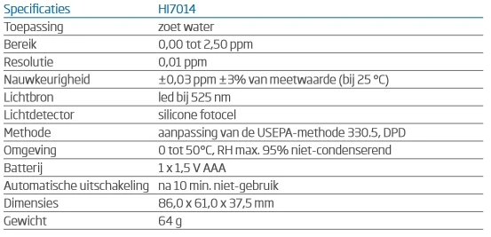 Deze zakformaat hanna fotometer vrije chloor is ontworpen voor de bepaling van vrije chloor in zwembaden en spa’s.
