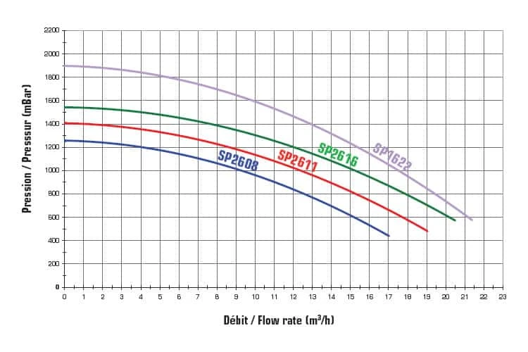Debiet van de Tri Fase Super pomp wordt bepaald bij 10m opvoerhoogte (tegendruk van een waterhoogte van 10m). De zwembadpomp kan het zwembadwater best rondpompen in 4-5h