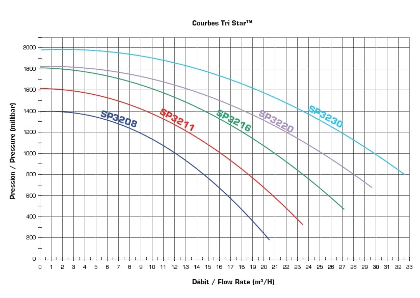 De Hayward Tri Star pomp is een verbeterende versie van de Hayward Noryl Super pomp. De Tri Star is beschikbaar in 0,75 – 1 – 1,5 – 2 – 3pK MF Deze zwembadpomp is specifiek ontwikkeld voor grote zwembaden en overloopzwembaden.