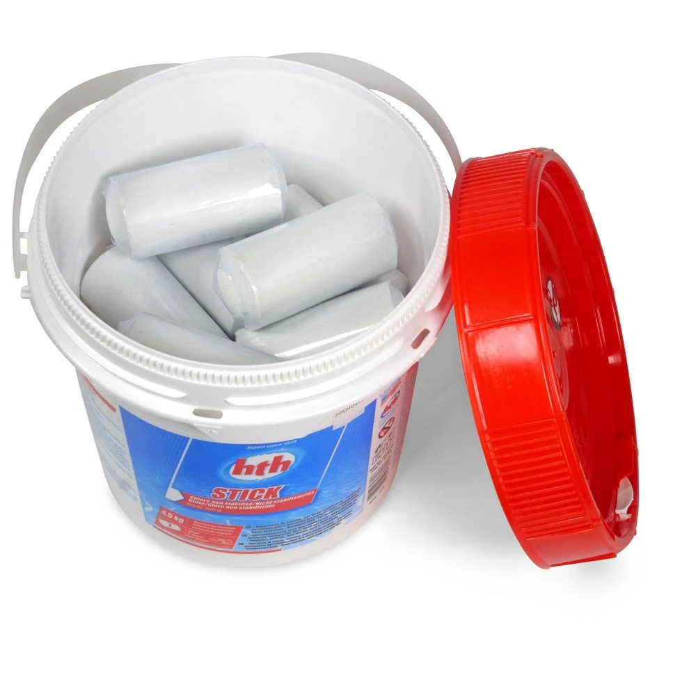 HTH Chloor sticks zijn anorganische chloortabletten zonder stabilisator voor het ontsmetting van zwembadwater. Behandeling tegen bacteriën, virussen, fungicide en algen voor privé zwembaden en publieke zwembaden zoals Hotels of zwembaden van Wellness centra. Deze traag oplossende HTH tabletten zorgen voor kristal helder en zuiver water.