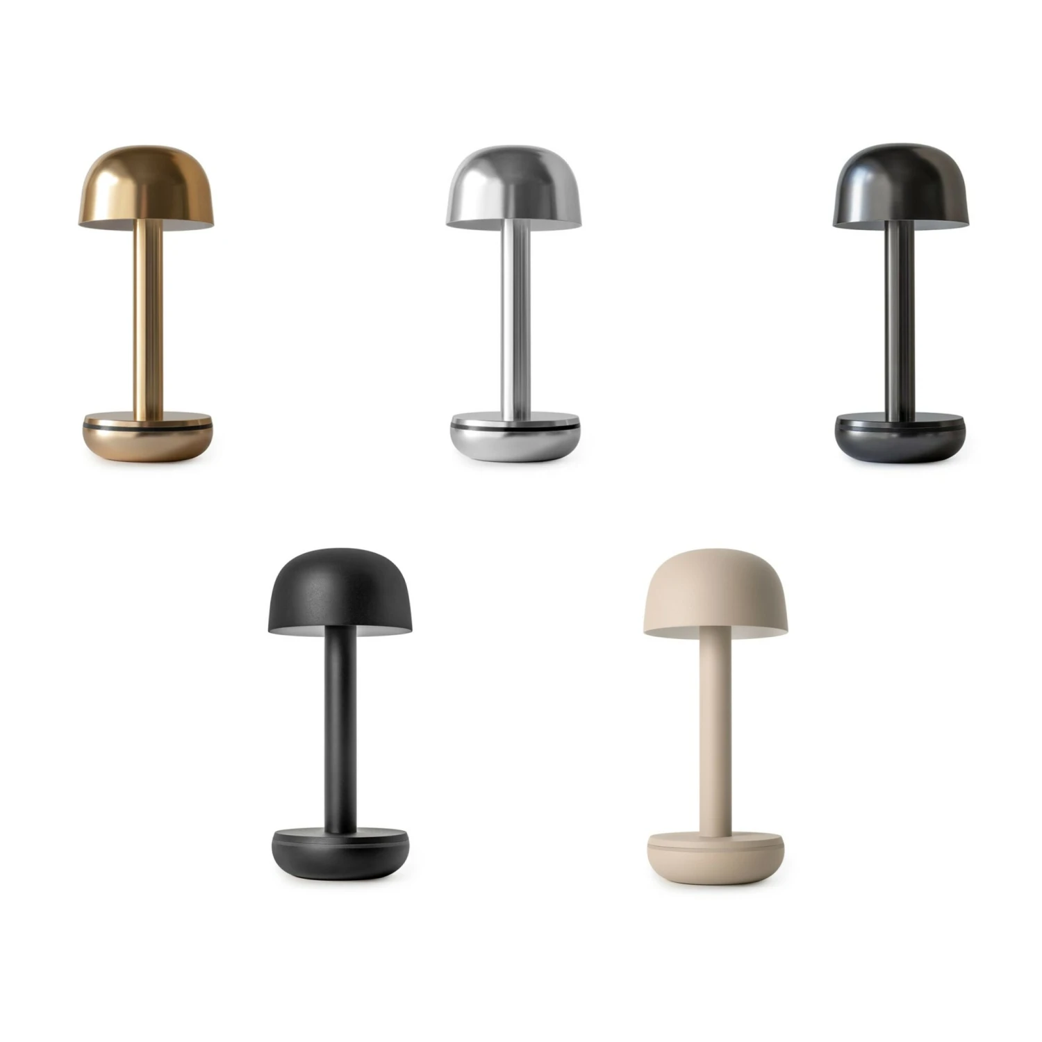 De Humble Two table light is een sfeerlamp in 3 metalic kleuren. Met deze draadloze sfeerlamp zit de sfeer in het poolhouse of op de tafel van resto & bistro direct gemaakt.