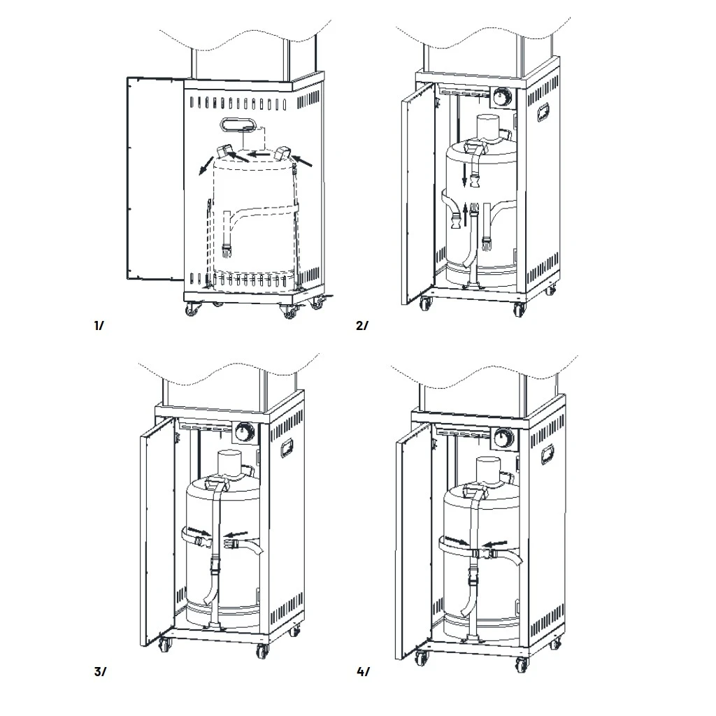 Voor het gas van de Ibiza gashaard terrasverwarming gebruik je standaard flessen Propaan gas van 4 tot 11kg. (bv Primagaz Easy blue). Maar ook Butaan gas in cilinders van 4,5 tot 13kg zijn bruikbaar voor dit toestel.