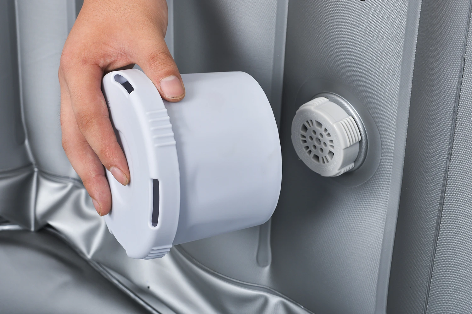 De inflatable spa BOA Rond beschikt over een krachtige motorblok die uitgerust is met een energiebesparende temperatuurregeling. De pomp beschikt over 3 functies namelijk: verwarming, massage en filtratie.