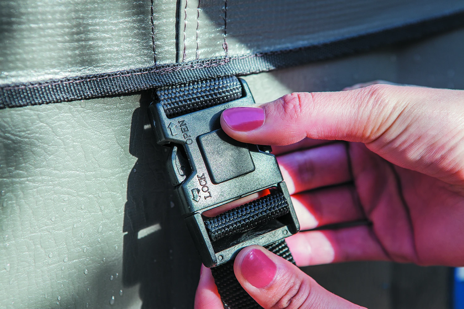 Ook is de spa voorzien van beveiligde vergrendeling met speciale klemmen en dubbel geïsoleerde elektrische verwarmingseenheid. Het controle paneel kan je vergrendelen en er zijn 3 soorten terugstroombeveiliging.