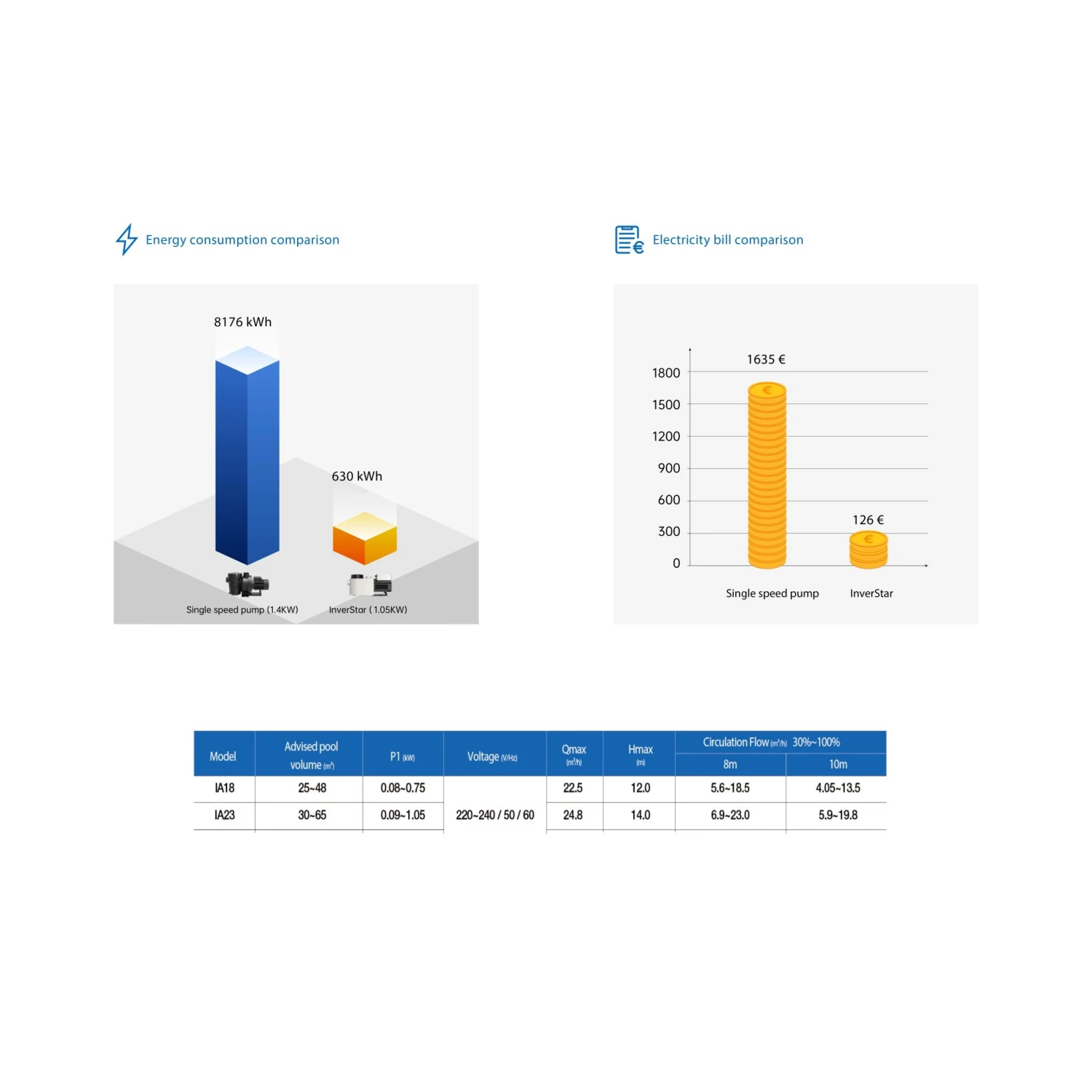 - IA 18 1pK pomp : zwembad volume 25-48m³