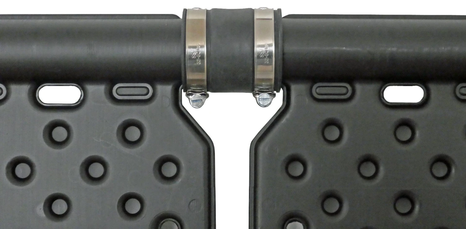 Mof 38mm voor connectie van Solabsorb zonnecollectoren Solabsorb type 1000 en Solabsorb type 1002. 1 mof met afmetingen 38 x 5 x 60mm en 2 bijhorende RVS klemringen.