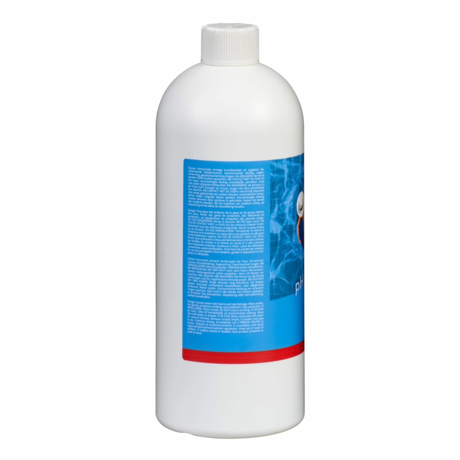 Indien de PH te laag is kunt u PH plus vloeibaar 1L gebruiken.