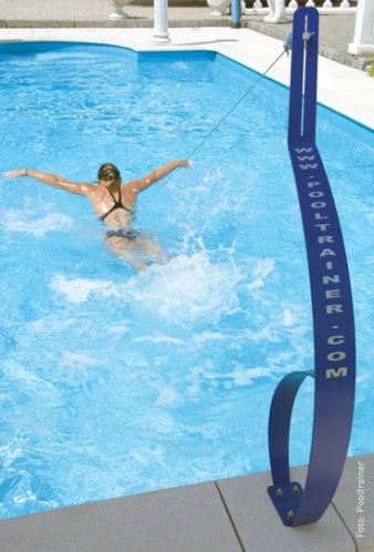 Het touw dat u vastmaakt rond uw middel is 4m lang. De pooltrainer plaatst u best OP de boordsteen of net er na op een maxiale afstand van 1m van de rand van het zwembad.