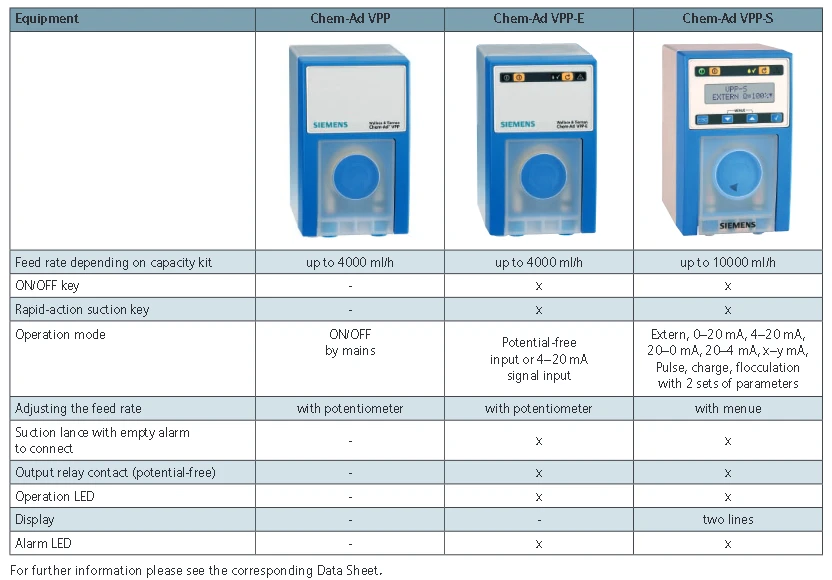 - Chem-Ad VPP-E en VPP-S pompen met snel reagerende aanzuig en LED alarm
