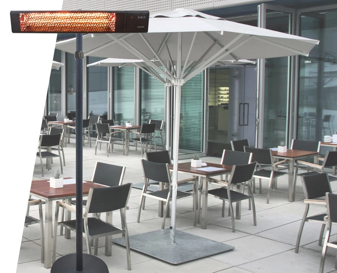 Smart IR verwarming op statief Focus Ultra Grey 2000 Watt – Met handige APP voor Android of Apple. – Modern design – Voor op terras of in het poolhouse