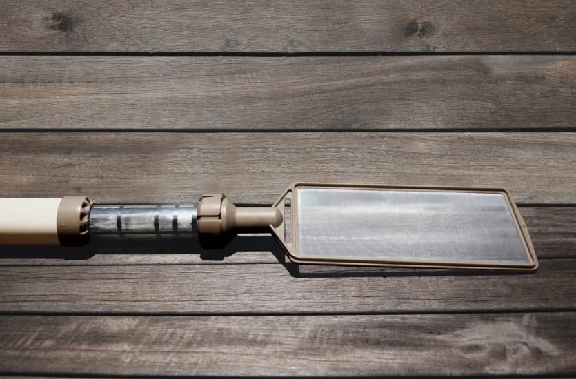 Werkt als een soort pomp systeem. Door de manuele zuiger op en neer te pompen, maak je een vacuum waarmee je de vuil delen opzuigt in het filtertje binnenin de stofzuiger.