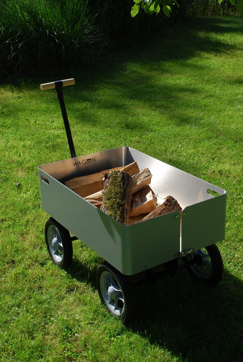 Een heel handige design Wagoon tuinkar van TOP kwaliteit voor het vervoeren van hout in de tuin. Kan ook gebruikt worden voor het vervoeren van je tuin picknick, de kids, een bak bier, de wijnkisten of op het strand. Vervaardigd met oerdegelijke top materialen door Atelier Tradewinds.